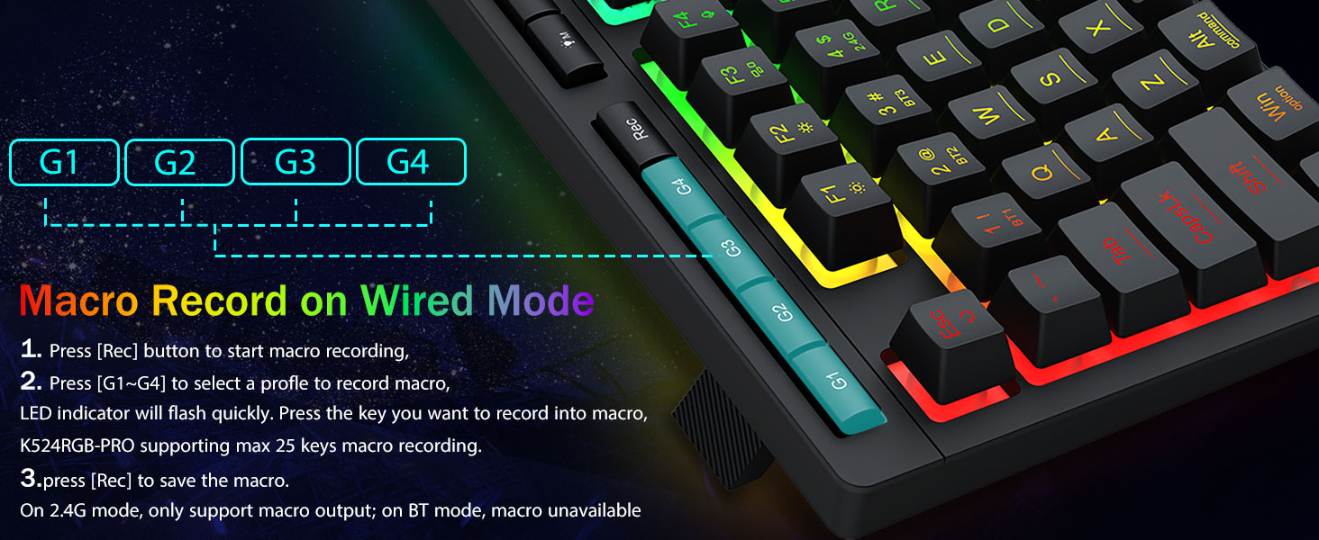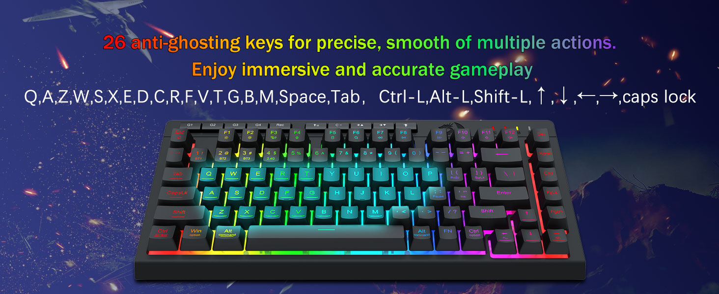 ʻO ka hana pāʻani pāʻani Pro-Steping a & Dedicted backlit- E hōʻike ana i nā kī anti-Ghosting (nā kī me kahi manawa ma waho ʻO nā pihi wikiwiki wikiwiki no ke kukui, ke kukui kukui, a me keʻano pāʻani e hoʻoponopono wikiwiki ai, a hiki i ke kukui pāʻani me ka pā o ke pihi.