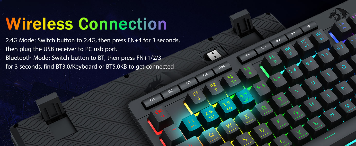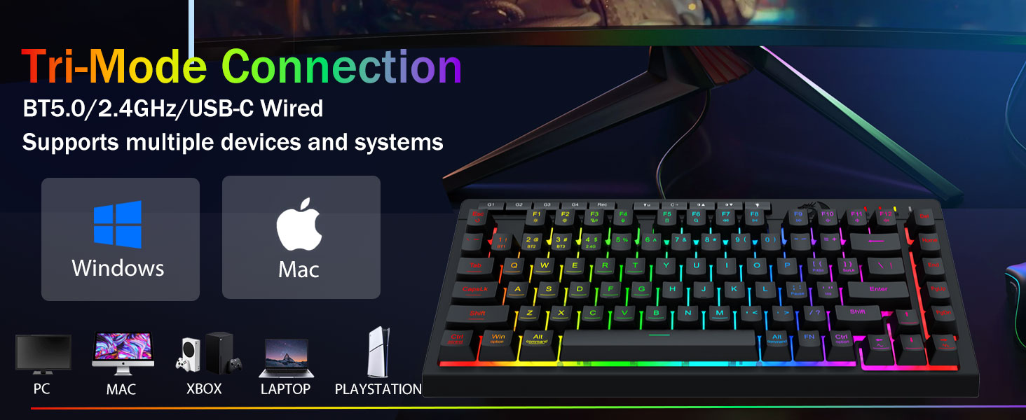 Tri-mode mode Vertitility & Multi-Mastery Mastery- E hoʻololi i ka seamlessly ma waena o blnetooth 5.0, 2.4ghz cryless, a iʻole nā mea hoʻohana, pc