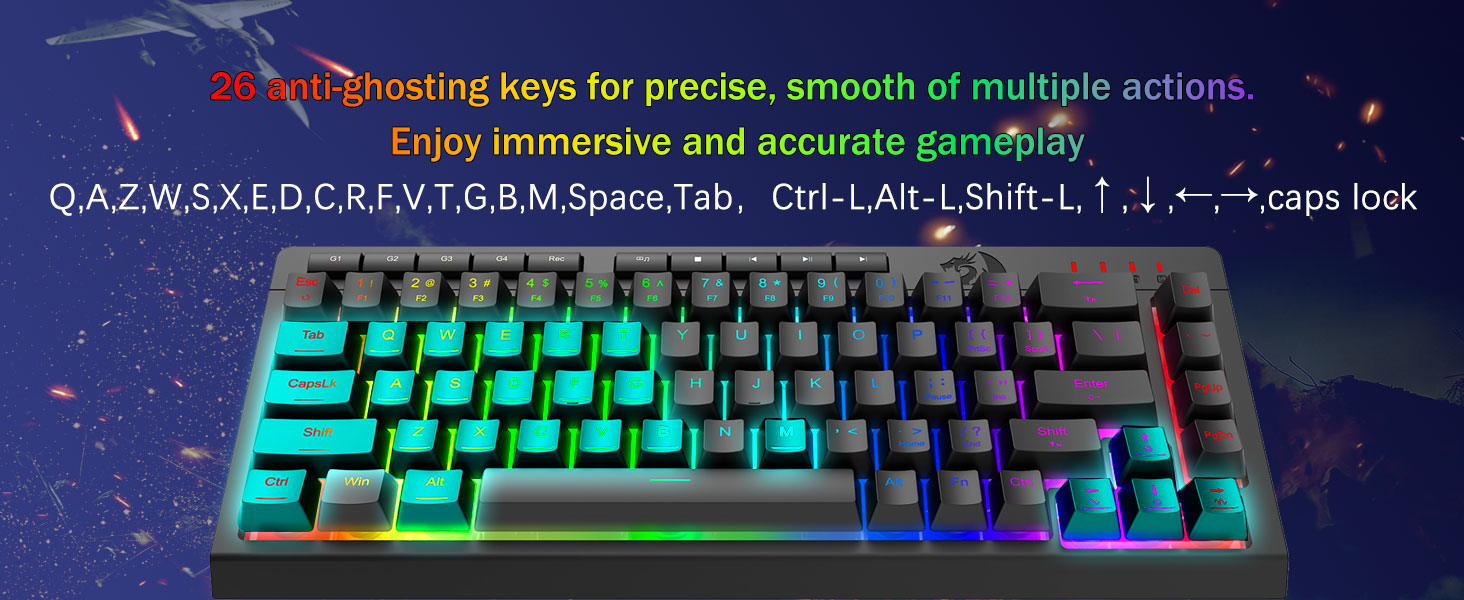 26ʻO nā kī nui anti-Ghost Strols & Dedicted Media- E hōʻike ana i nā kī anti-Ghosting (nā kī me kahi manawa ma waho ʻO nā mea i hoʻokaʻawaleʻia e ka mea e hana ai,ʻo ka pāʻani,ʻo ka pause, a hele i ka multimedia pololei mai ke kīʻana a he mea maikaʻiʻole kāu gameplay.