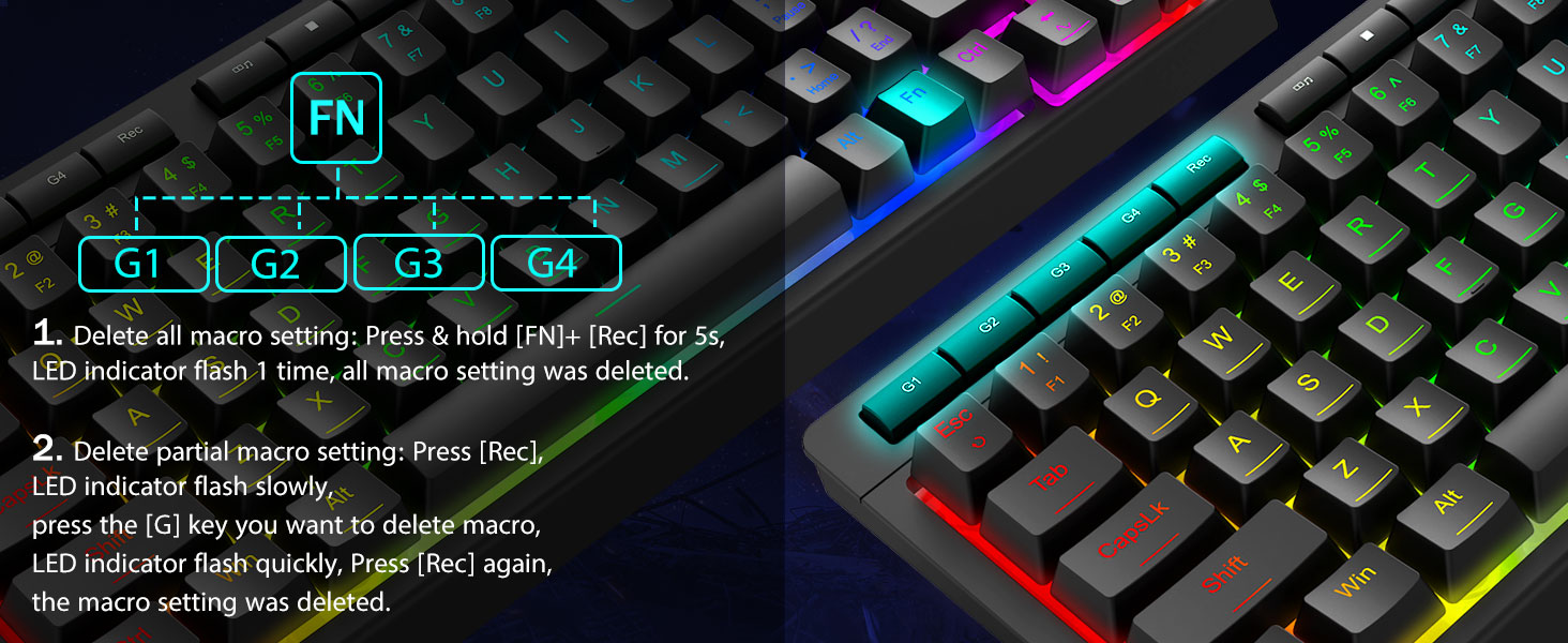 ʻO ka hoʻololiʻana o ke pāʻani pāʻani-ʻO 4 mau luna ma luna o nā kī (G1 ~ G4) e hoʻolālā a hana ma ka lele me kahi polokalamu houʻole. He mea maʻalahi nā kī e hoʻoponopono a hiki ke hana i nāʻano likeʻole o nā macros likeʻole.