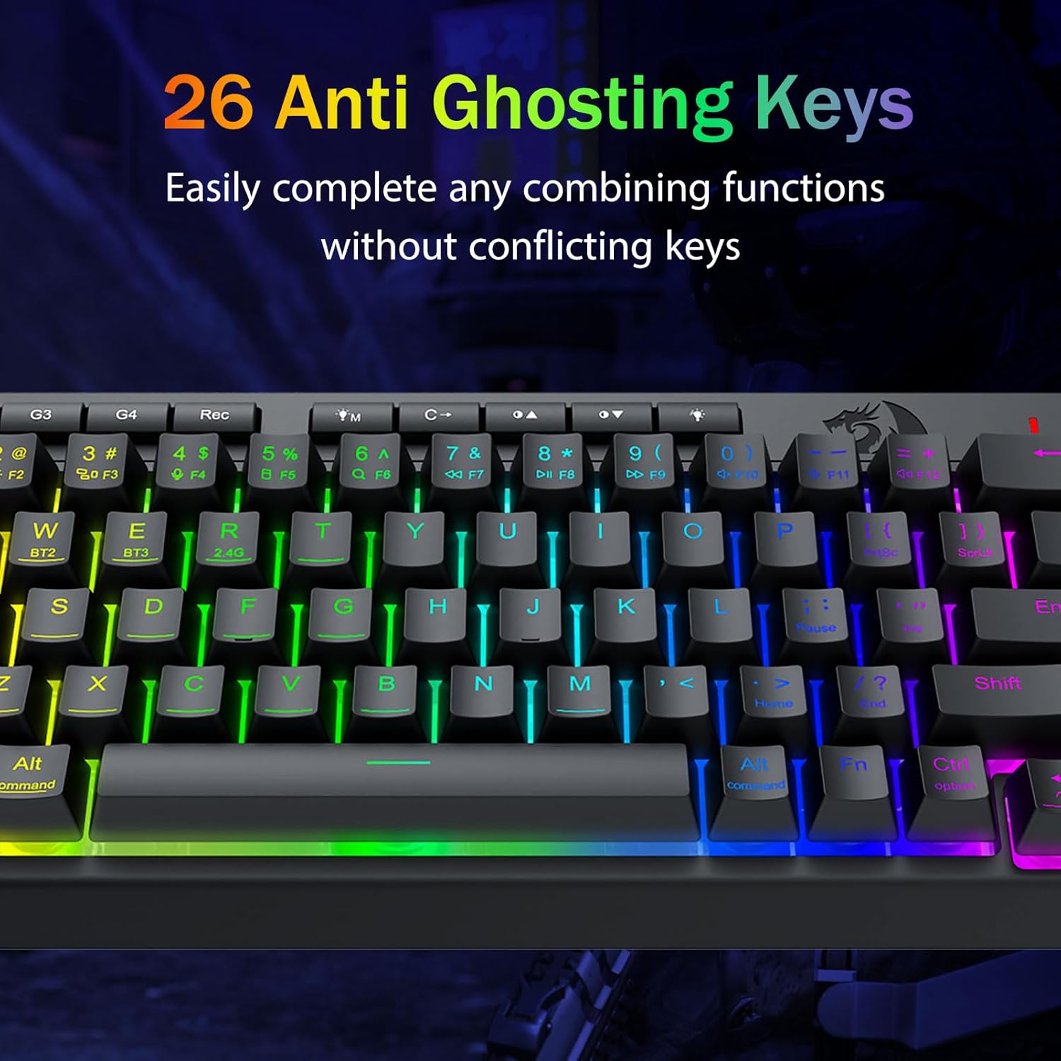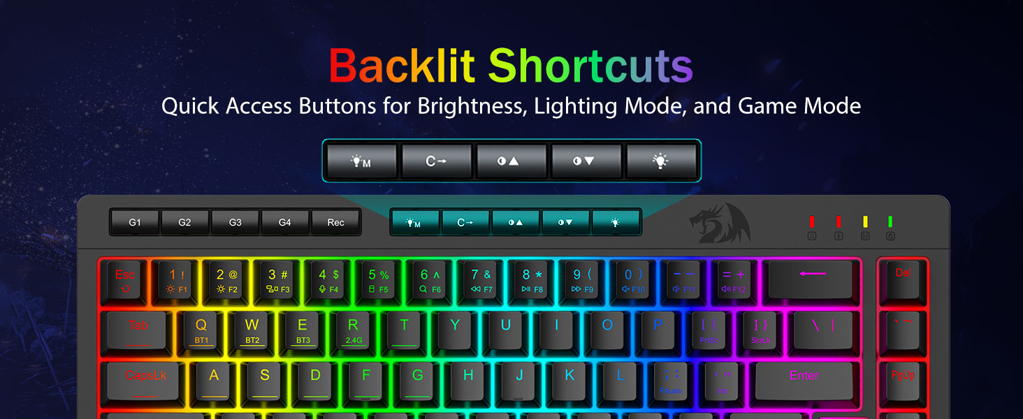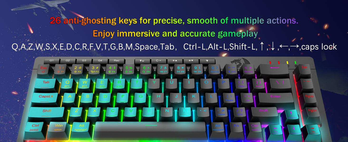 ʻO ka hana pāʻani pāʻani Pro-Steping Active & Dedicted backlit -E hōʻike ana i nā kī anti-Ghosting ʻO nā pihi wikiwiki wikiwiki no ka mālamalama, ke kukui kukui, a me keʻano pāʻani e hoʻoponopono wikiwiki ai, a hiki i keʻano o keʻano pāʻani me ka pā o kahi pā.