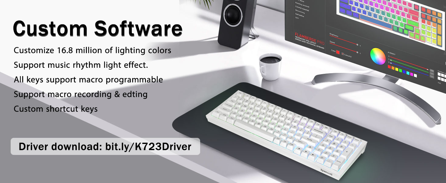 Mechanical gameging:K723 he papa papa hana uku uku no ka hana a me ka pāʻani. Me ka hopena o 16 RGG e hoʻololi ana i ka hopena nui i ka lewa nui i ka lumi pāʻani. Kākoʻo Kekuhi i nā hana hana mask, eʻae ana i ka hoʻopaʻaʻana ma Macro i hoʻopaʻaʻia a hoʻoponopono pono i keʻano o ke aniani. N-key roollover, hiki i ke kekuhi ke pane i nā pihi kī nui i ka manawa like,ʻo ia ka mea e kōkua nui i nā pāʻani maoli.