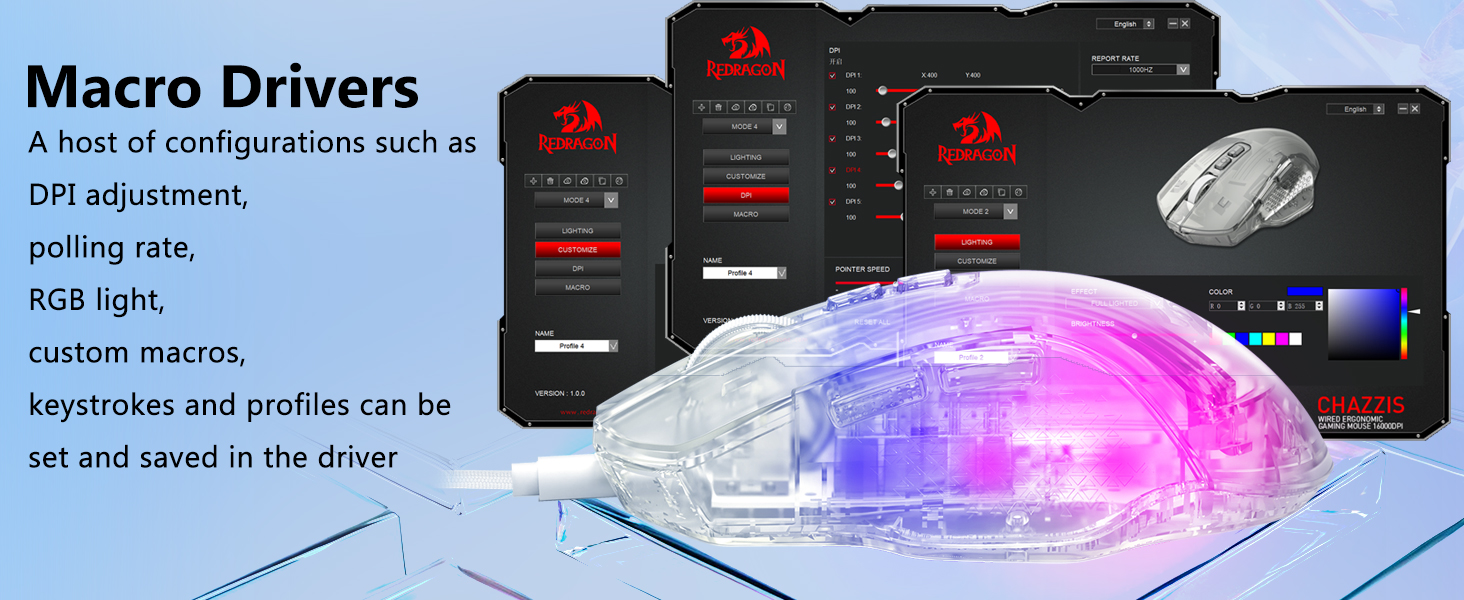 ʻO CHuangquan, kahi loea i nā pôpeku pāʻani, e kāhea iāʻoe i nā mea hoʻokūkūʻo Redrabon i kā mākou mea hoʻokūkū hoʻokūkū nui. Nā Kūlana DPI (a hiki i 24,000 dpi) a me 4 koho balota no ka heleʻana o Ultra-resping. ʻO kāna mau'āpana kūwaho e hoʻohui i nā aesthetics aesthetics me ka hana,ʻoiai ke hōʻemiʻana i ka grip hōʻoluʻolu i nā wā i hoʻonuiʻia. ʻO ka hiʻohiʻona hiʻohiʻona 8 Vibrant RGB i nā koho backlit RGB