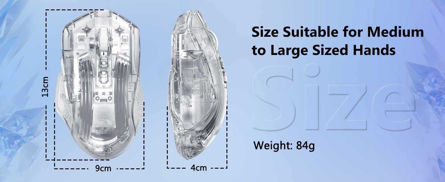 【Transpant aʻoluʻolu Grip】Ua uhiʻia ke kino holoʻokoʻa me kahi mea i hoʻopaʻaʻia i ka pc o ka pc o ka laka ʻO nā pahu ergonomic ma nāʻaoʻaoʻelua e hana i nā mice gamele e kūpono i kekahi mau lima. Hāʻawi ia i ka hōʻoluʻolu lōʻihi loa no nā mea pāʻani, me kaʻole o ka momona i ka wā lōʻihi o nā hola lōʻihi. ʻAʻole ia e huki i ka wā e hāpai ana i ke kiʻi pāʻani pāʻani, a iʻole ke hana wikiwiki a me nā scoine filse.